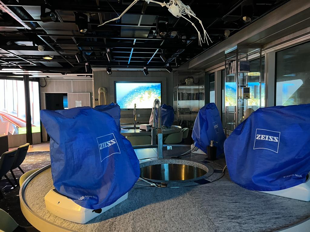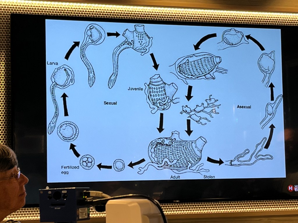 The evening after “Information for tomorrow” session, there was a special impromptu feedback session at the microscopes by Zoe (whom I had marked as “The Science Lady”) on some mystery goo they collected during the Science Boat session during the day.
