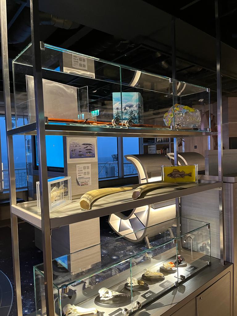 16:30 The guest scientist lecture on Whale Cencus work being carried out while the boat is moving in daylight hours. There were two guest scientists on board that stood in the bridge and surveyed for whale sightings. If there is a sighting, they would record it and obtain the co-ordinates from the captain. This information is used to extrapolate whale population information in the region.