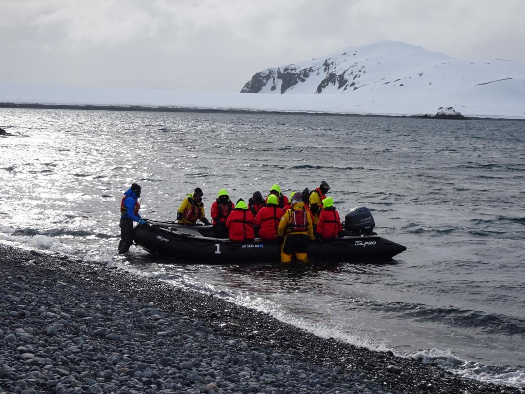 Almost everyone in the lecture hall offered to assist – they would not let us help 😦 We would have to make do with a Zodiac cruise around the bay – watching the action and the penguins from the water.