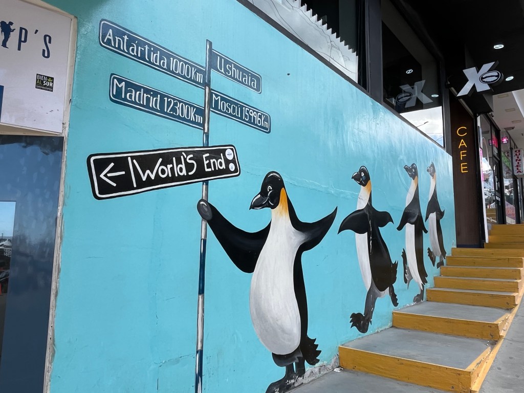 Luggage delivered to the lines of other Hurtigruten destined items we boarded our designated busses for a quick drive through the ‘main road’ of town. Then we joined the line of other busses parked just outside the port. Yes – where the daytrip tour operator offices are and the infamous Fin del Mundo sign.